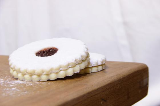 linecké cesto plnené nugátovým krémom, máčané v čokoláde